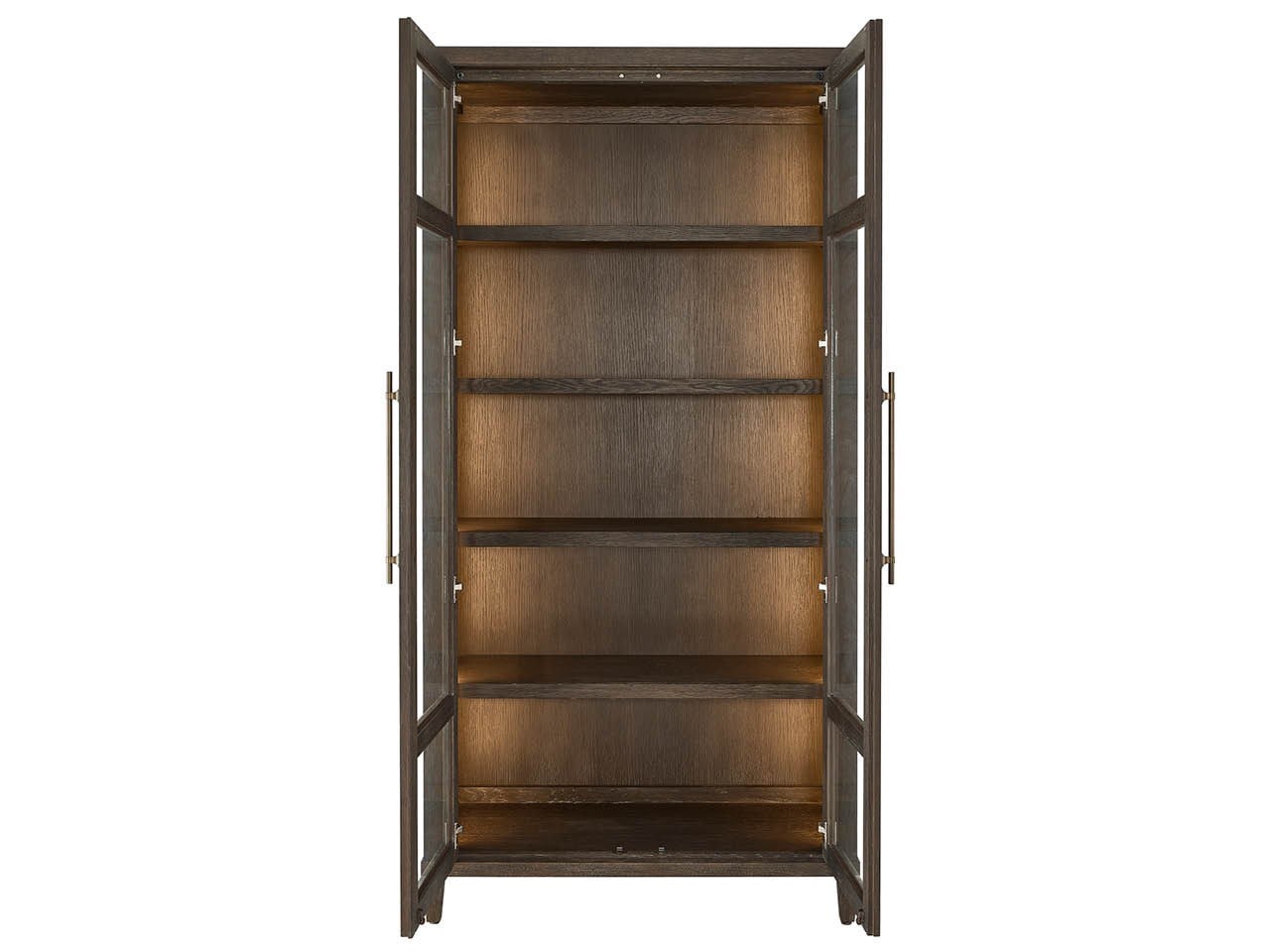 The Cocoa Cabinet provides elegant storage and display behind glass doors finished in signature Cocoa oak. Featuring adjustable shelving and integrated LED strip lighting, this substantial piece offers both practical organization and sophisticated presentation for dining room storage.