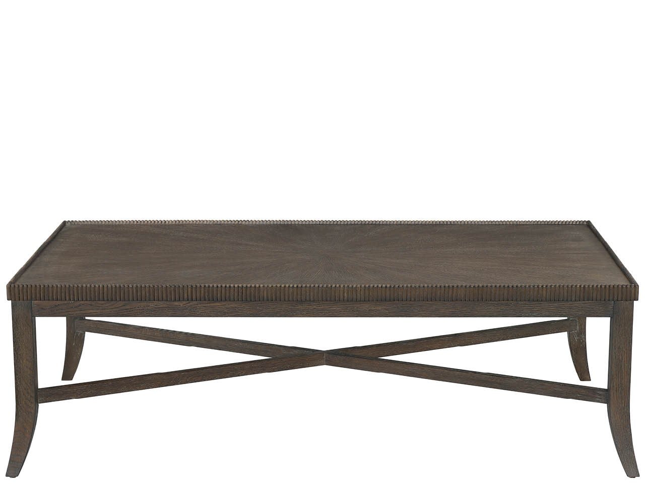 Montclair Cocoa Cocktail Table (U508829)The Cocoa Cocktail Table features elegant beaded edge detailing and a distinctive curved leg design that adds graceful movement to a substantial rectangular form. Finished in signature Cocoa oak, this piece provides generous surface space while maintaining refined neoclassical proportions.MontclairCocktail TablesLiving RoomU508829
