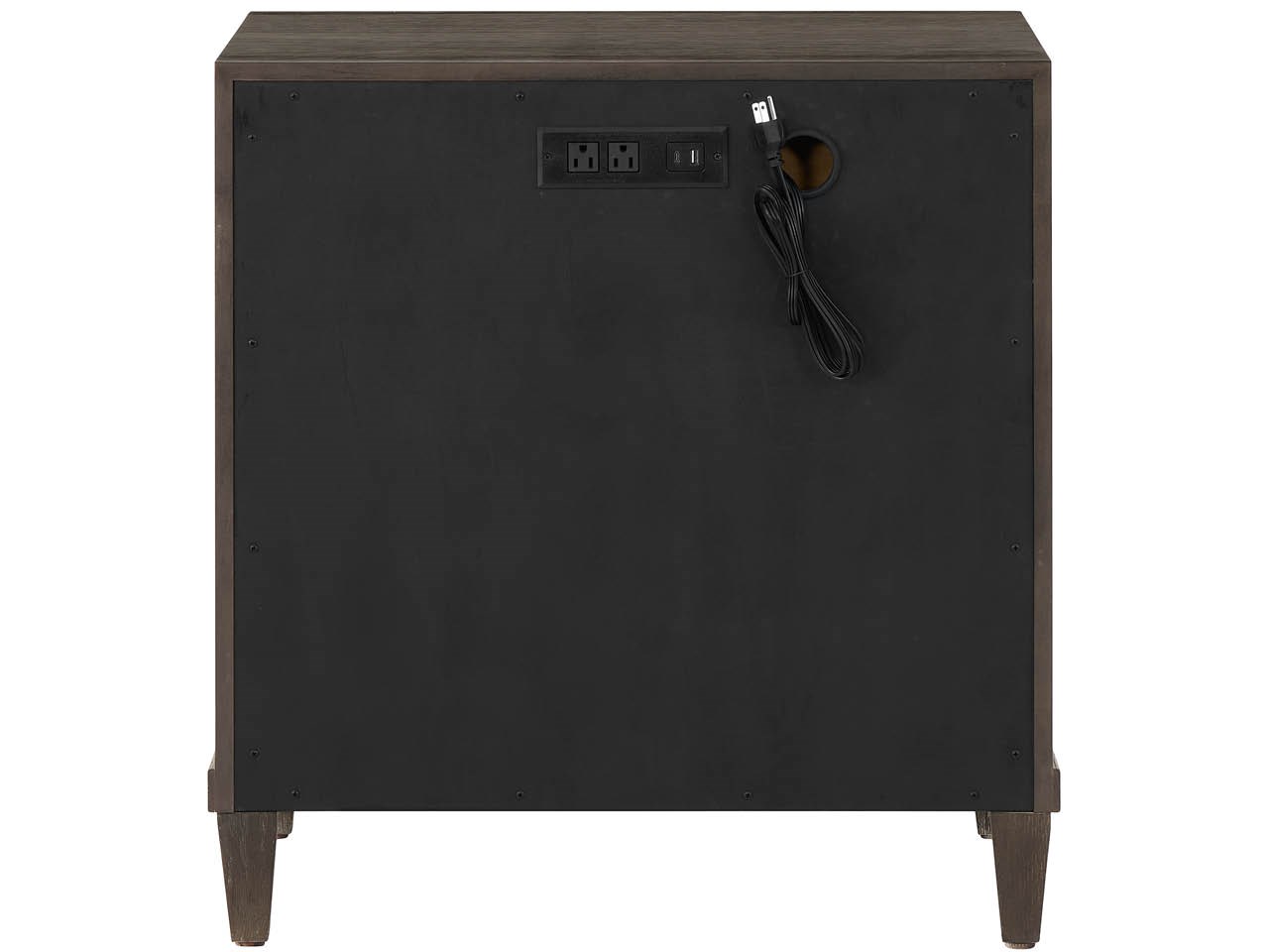The Cocoa Nightstand balances storage and display with two drawers and open storage space between them. Finished in signature Cocoa oak with integrated electrical components, this piece maintains a clean, streamlined aesthetic perfect for bedside organization.