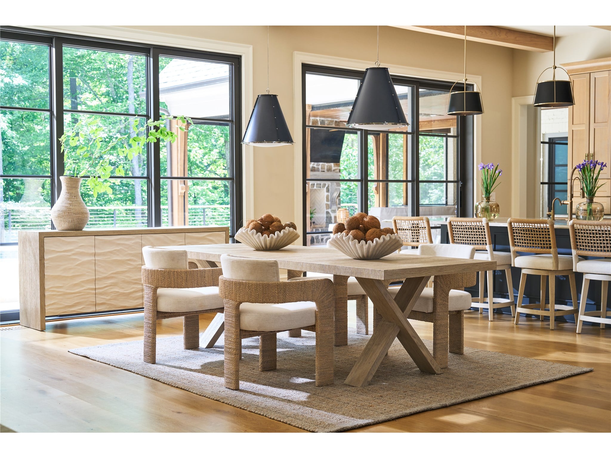 Oasis- Coastal Living Home Collection Dockside Dining Table (U533653)The Dockside Dining Table features a distinctive x base. This rectangular dining table extends from 86 inches to 118 inches with two 16-inch leaves, creating flexible dining space perfect for both everyday meals and entertaining.Oasis- Coastal Living Home CollectionDining TablesDining RoomU533653