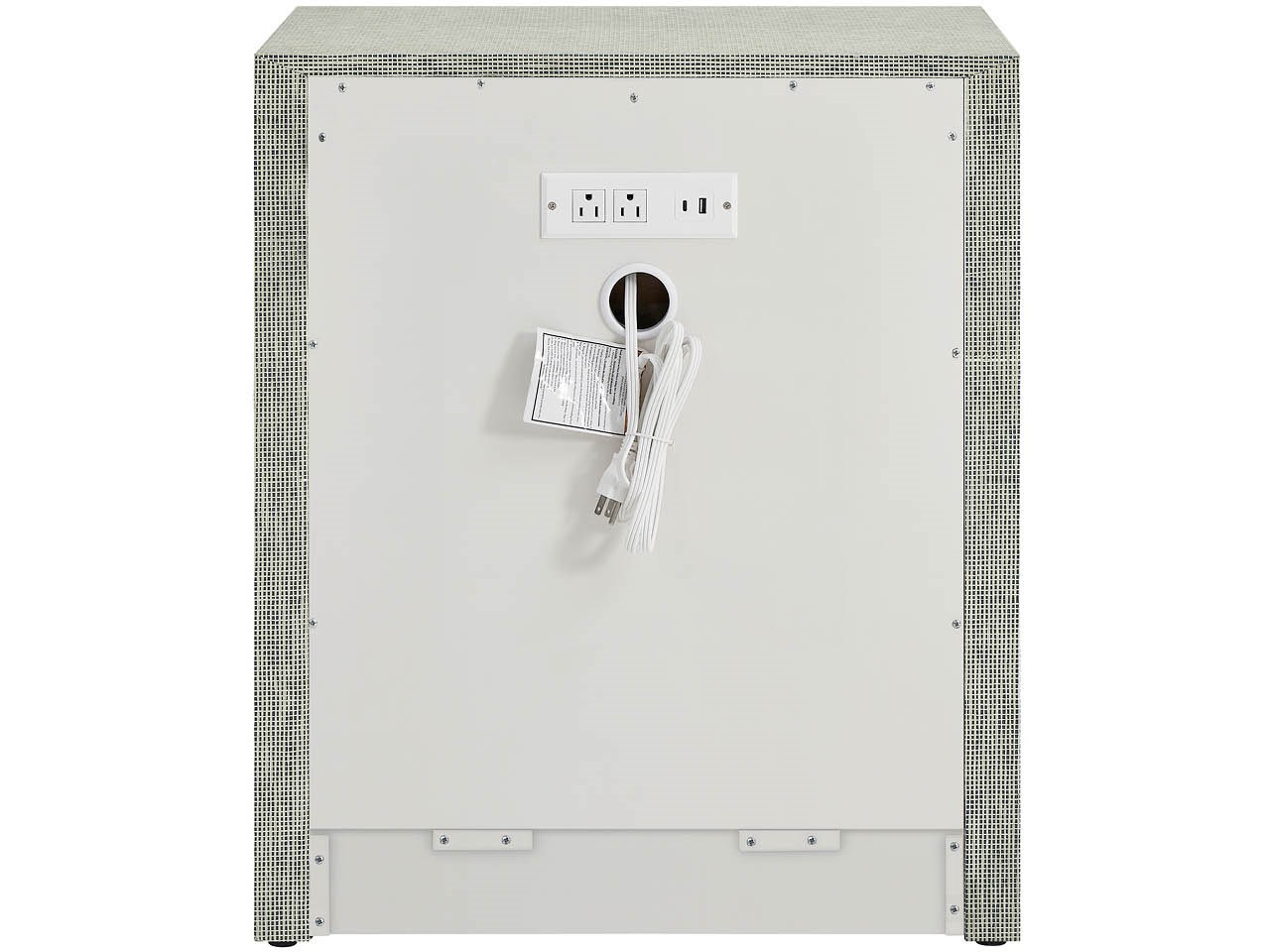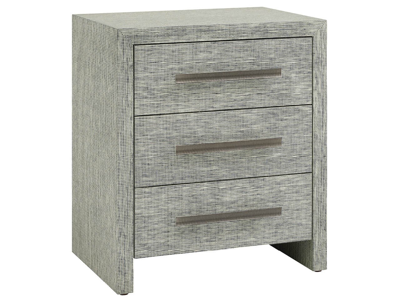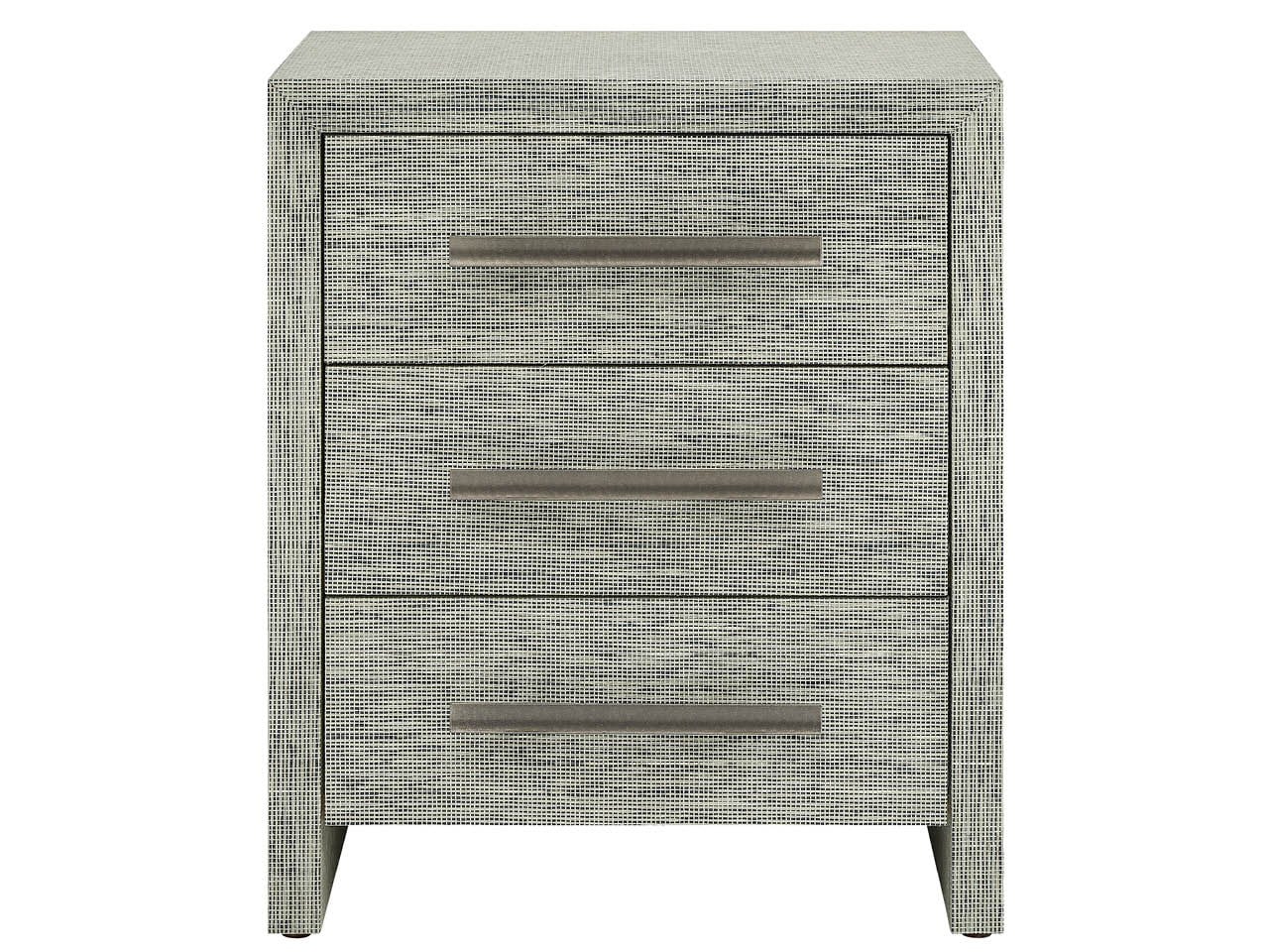Oasis- Coastal Living Home Collection Seascape Nightstand (U533B357)The Seascape Nightstand is wrapped in textured Seascape grasscloth wallpaper, bringing subtle pattern and a touch of coastal elegance to your bedroom. This three-drawer, 24-inch width nightstand makes it perfect for smaller spaces while still offering ample storage and convenient electrical outlets.Oasis- Coastal Living Home CollectionNightstandsBedroomU533B357
