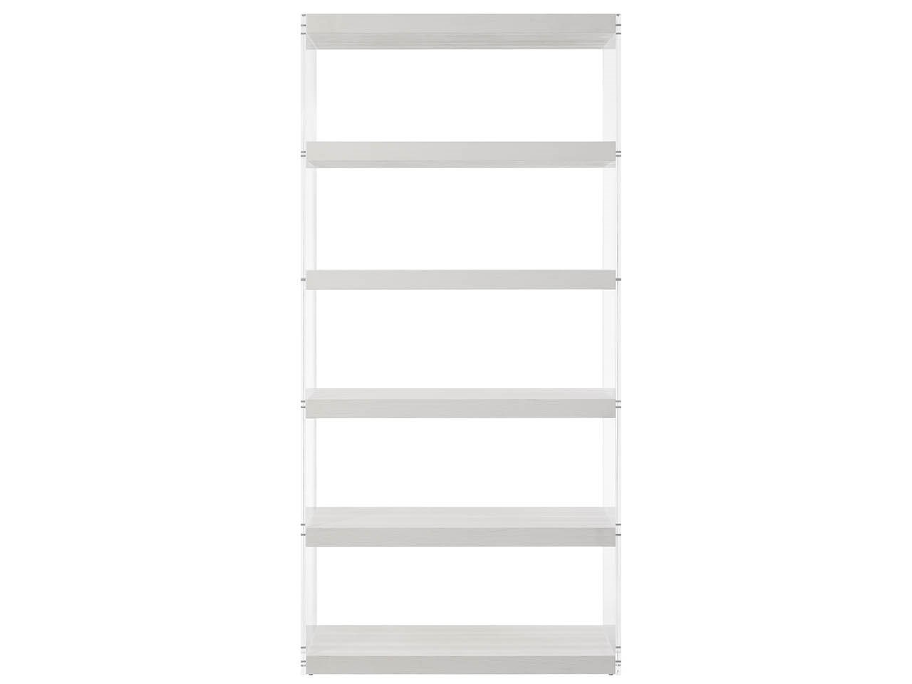 Oasis- Coastal Living Home Collection Shoreline Etagere (U533A850)The Etagere features a 40-inch width in crisp Shoreline white with acrylic end supports for a light, airy appearance. This 84-inch height etagere provides ample display space while the transparent elements create a sense of openness perfect for your coastal-inspired home.Oasis- Coastal Living Home CollectionShelvingOfficeLiving RoomU533A850