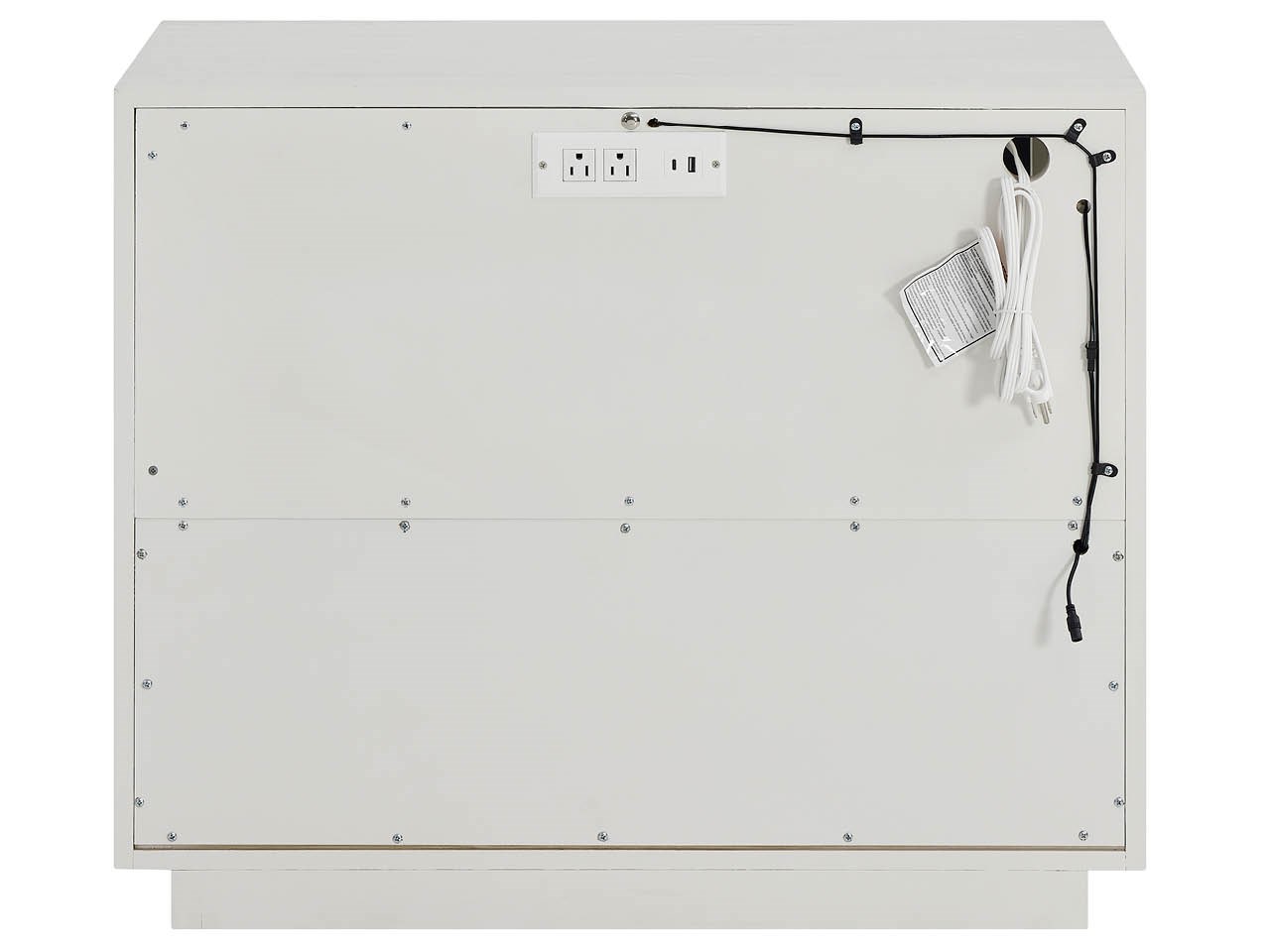 Oasis- Coastal Living Home Collection Shoreline Nightstand (U533A356)The Shoreline Nightstand combines a drawer with an open shelf space, all in a fresh white finish with contemporary hardware and LED lighting. This 34-inch-wide nightstand includes integrated electrical outlets with USB connections that enhance functionality while maintaining the collection's serene coastal style.Oasis- Coastal Living Home CollectionNightstandsBedroomU533A356